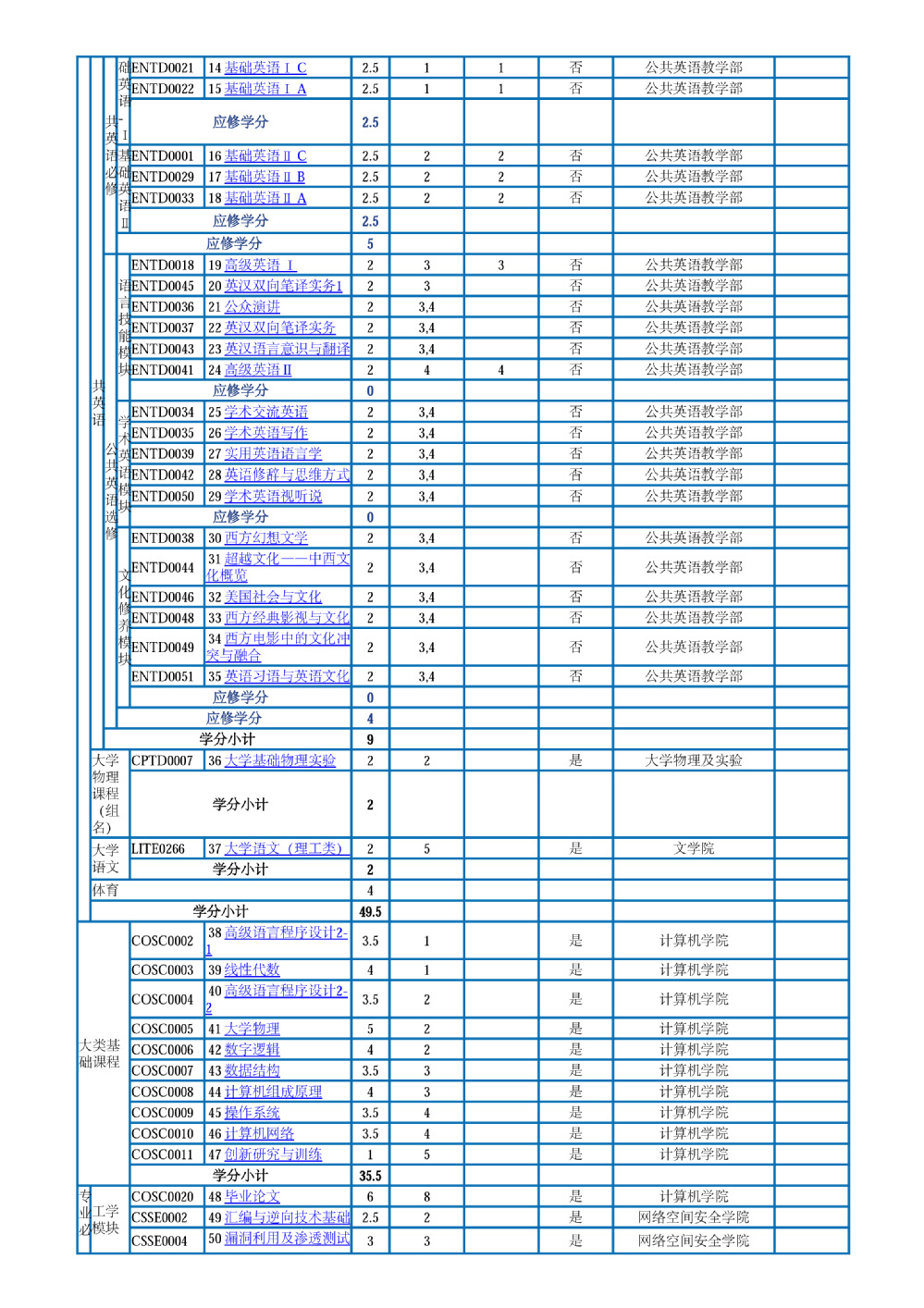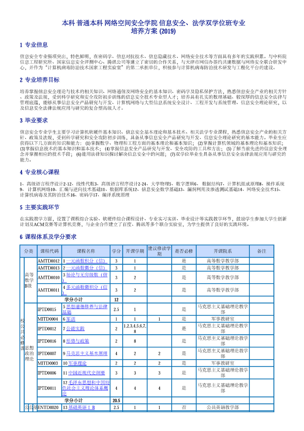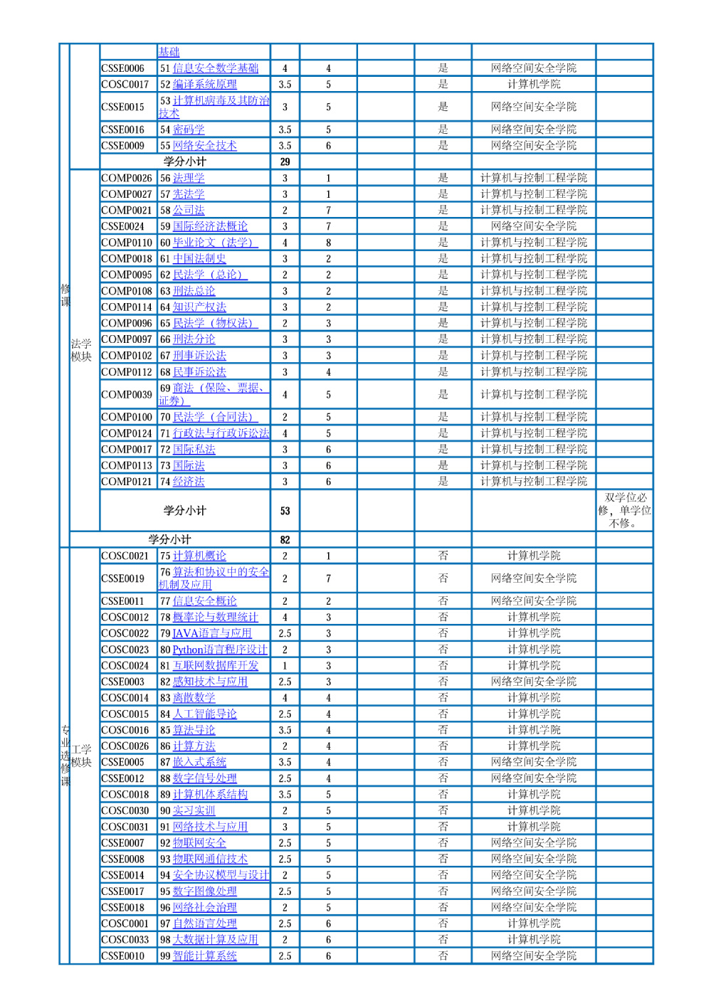 信息安全、法学双学位班